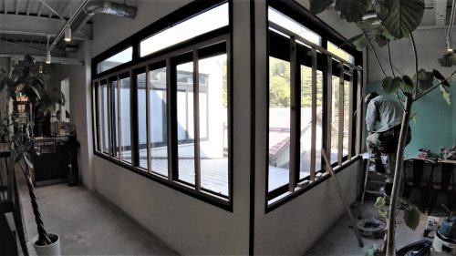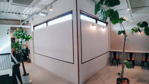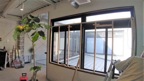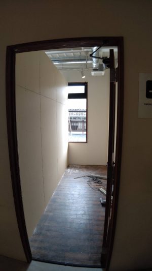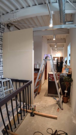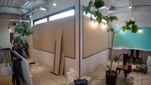 既存のスペースに新たな間仕切りの造作や仕切り窓の撤去、クロスの貼り変え、です!