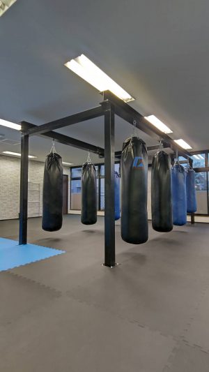 リングやサンドバッグ架台も工場で製作後設置しました。