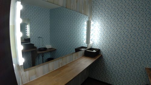 最後にクロスや床仕上げ、鏡、照明を取り付けて完成です!