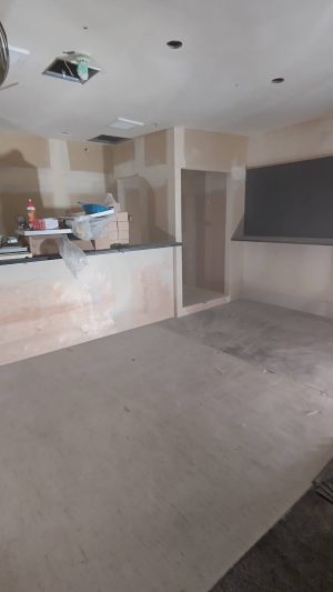 配管工事後に什器類造作設置、クロス&鏡貼り、床CF、電気工事、照明設置をしました!