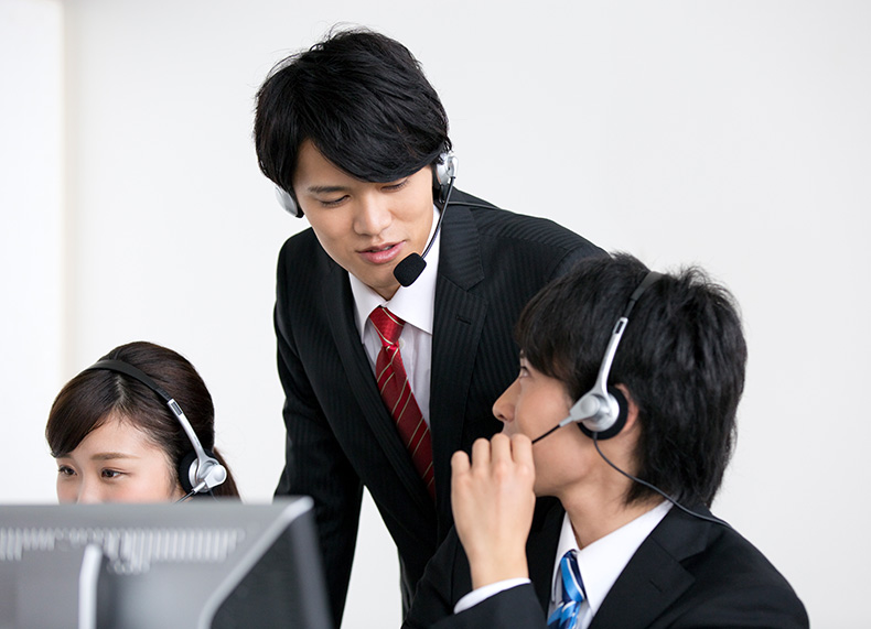 電話応対の基本的なマナーはもちろん、アウトバウンド専門のオペレーター研修を行い、「KPIの達成」「状況判断スキル」等の項目をクリアしたオペレーターのみをクライアント様のコールに割り当てております。また、派遣が多い業界ですが、自社雇用のみで運用している為、経験豊富なスタッフのみで構築しております。